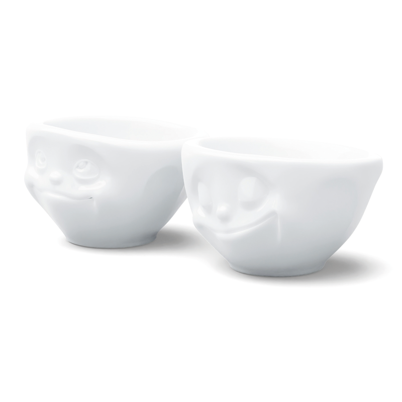 Die beliebten Schälchen mit Gesicht gehen in die nächste Runde: „Verträumt“ und „Glücklich“ ergänzen die Serie um zwei charmante Varianten für Dips, Marmelade & Co. Hergestellt aus hochwertigem Hartporzellan in Hotelqualität, vielseitig einsetzbar – sogar als Espressotasse. Spülmaschinenfest, mikrowellengeeignet und stilvoll in einem Geschenkkarton verpackt – ein kleines Set mit großer Wirkung. 100 % Made in Germany. Größe: Ø 8,1 x 5,1 cm; Volumen: 100 ml