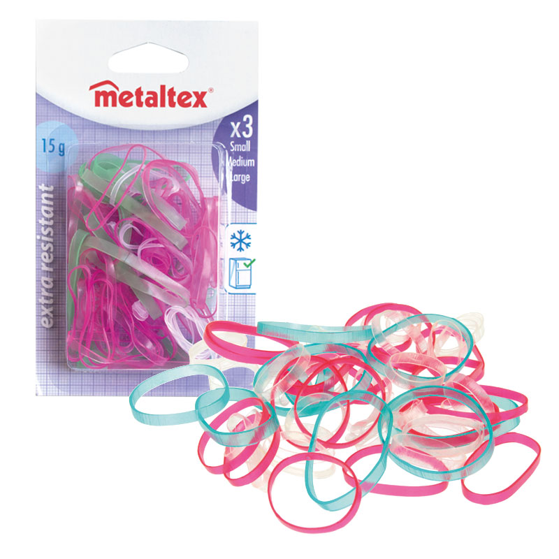 Die extra breiten, elastischen Gummibänder in sortierten Farben und drei Größen halten sicher zusammen, was zusammengehört – ob im Haushalt, Büro oder sogar im Gefrierfach. Mit Ø 3,3, 4,5 und 6,2 cm lässt sich alles sicher verpacken. Ideal für Ordnung mit System.